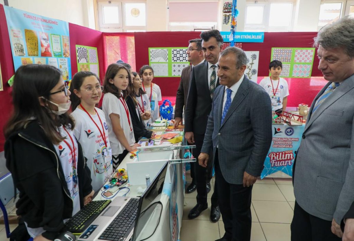 Vali Sonel, bilimin ve bilimsel çalışmaların yeni nesiller tarafından benimsenmesi, teşvik edilmesi, günlük hayatla ilişkilendirilmesi ve bilim kültürünün yaygınlaştırılması amacıyla hayata geçirilen fuar kapsamında öğrencilerin bilimsel çalışmalarının sergilendiği stantları tek tek gezerek, projeleri dikkatle dinledi ve projeler hakkında öğrencilerden detaylı bilgi aldı.
