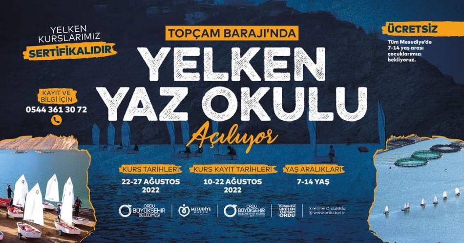 Ordu’nun kıyı şeridinde bulunan tüm ilçelerinde eğitimler yapan Ordu Büyükşehir Belediyesi Spor Kulübü, denize kıyısı olmayan ilçelerde de çocukların yelken sporuyla tanışmasını sağlıyor. Bu doğrultuda bir eğitim programı hazırlan Büyükşehir Belediyesi Spor Kulübü yelken sporunu Mesudiyeli çocukların ayağına götürecek. Mesudiye’de bulunan Topçam Baraj Gölü’nde gerçekleştirilecek eğitimlere 7-14 yaş arası tüm çocuklar ücretsiz katılabilecek.