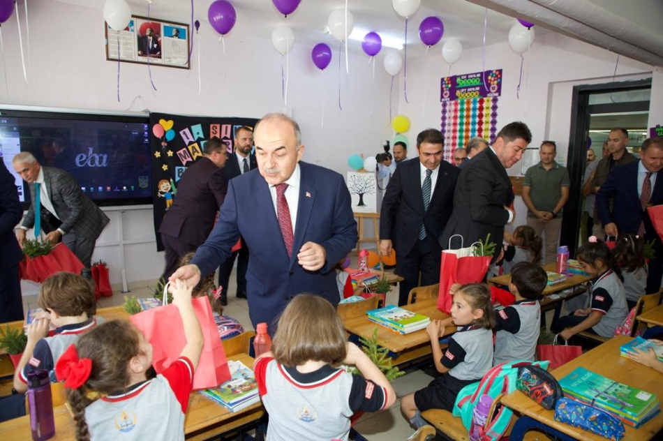 Öğrenciler ile birlikte okul sıralarına oturarak öğrencilerle bir süre sohbet eden Vali Muammer Erol, öğrencilere yeni eğitim-öğretim yılında derslerinde başarılar diledi.