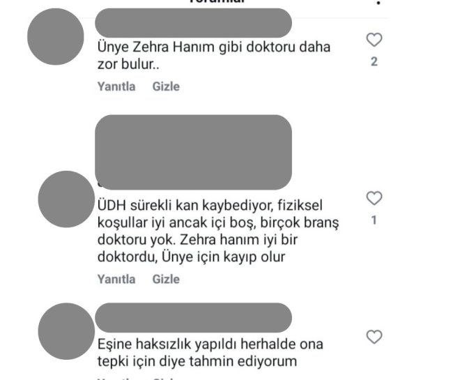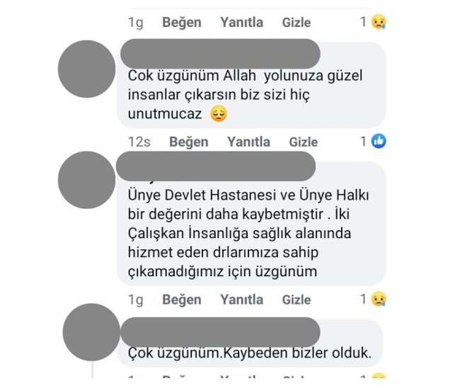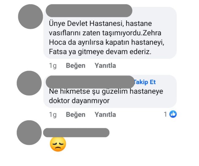 Bazı vatandaşlar yorumlarında Ünye Devlet Hastanesi idaresine de suçlama yönelterek, Dr. Karadağ’ın ayrılmasında sorumluluk sahibi olunduğunu iddia etti. Birçok yorumda ise; Dr. Zehra Öztaş Karadağ’ın işini özveriyle yapan, sıcakkanlı ve iyi bir doktor olduğu belirtilerek ayrılışıyla ilgili üzgünlük cümleleri yazıldı.